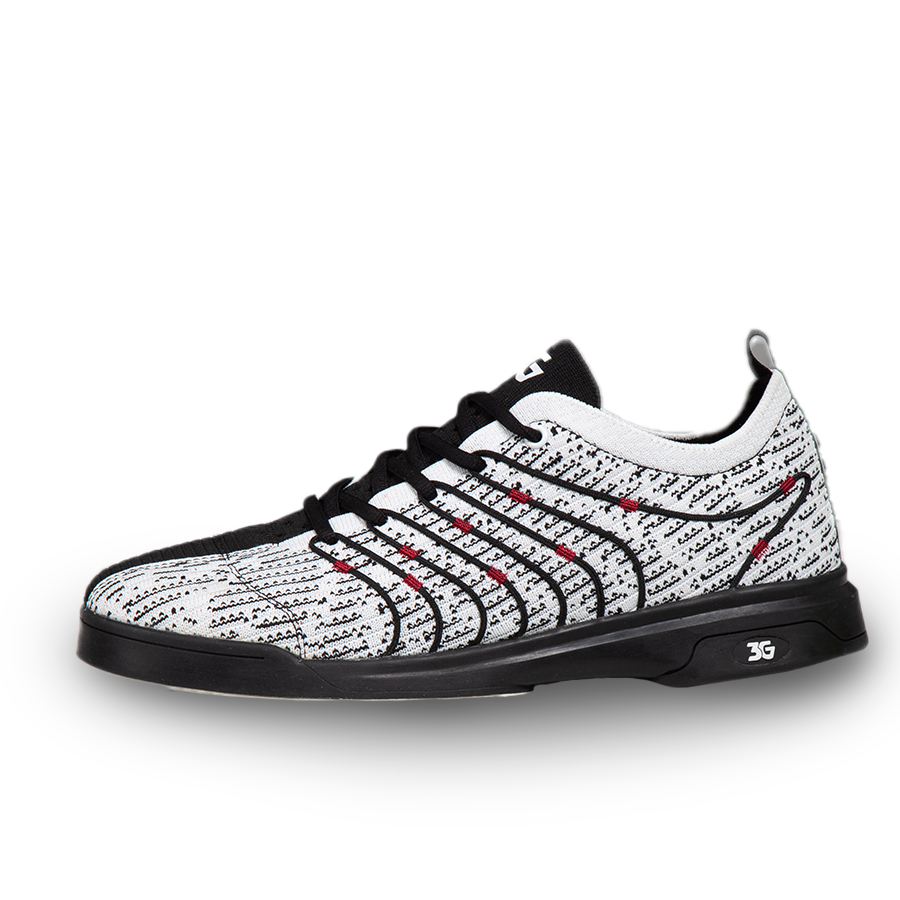 "3G Men’s Ascent White Black Right Hand Bowling Shoes Featuring our new Rise outsole. This lightweight outsole won’t sacrifice durability as it’s a blow rubber outsole. Authentic Clarino Microfiber sole matched with our new 3G grooved heel on the slide foot. Fixed durable rubber with 3G grooved heel on the traction foot for maximum leverage. Fly kit upper with 3d molded ribbing for extreme comfort with a molded heel stabilizer.